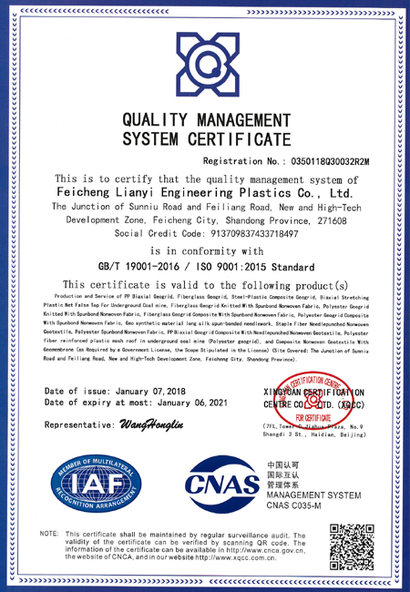 山東土工格柵廠家       山東肥城聯誼工程塑料有限公司位于馳名中外的“中國桃鄉”——肥城,周邊風景秀麗,環境優雅,公司現有員工500余人,其中具有高中級以上職稱的專業技術人員86名,擁有德國卡爾邁耶 (高速“拉舍爾”經編機、瑪里莫)多軸向織機、道尼爾織機,及兩條雙向格柵生產線,兩條單向格柵生產線,多條土工格室生產線。
